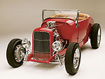 A set of American Stamping '32 'rails were notched in front for spring relief, then fully boxed and further reinforced with a network of tubular steel crossmembers. A Super Bell dropped front axle, split early-Ford wishbones, tube shocks, and '48 Ford drums in front preserve a semblance of period feel. The rear axle is a Halibrand V-8 quick-change with 11-inch, late-Ford drum brakes. It's anchored by an arched Model A transverse leaf spring, a set of Pete & Jake's ladder bars, The Deuce Factory sway bar and tubular shocks. Cadmium plating of most of the visible suspension pieces gives this roadster's traditional running gear a vintage race car appearance.