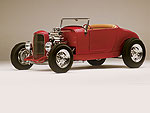 When Jon Hall proudly showed me his new red '27 T roadster on Deuce 'rails, I immediately thought of the old Macchia-Banto car. But Jon's T seemed a scoch bigger. He went the other way, making the T body fit the Deuce frame. Indeed, Jon's car sports a widened and lengthened '27 roadster body on a '32 frame. Jon and his team cleverly scaled up the original T's body proportions, creating considerably more cockpit room and storage space, while preserving the timeless body lines and tail curvature that make a vintage '27 T still look remarkably contemporary.