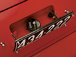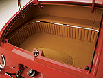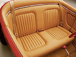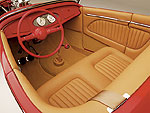 Pleated leather interior by ASC is reminiscent of upscale OEM luxury car fitments. That cool chrome door rail by ASC incorporates the inside door handle. Updated Model T latches are utilized. Interior features a 4-inch stretch and 3-inch-deeper cockpit.