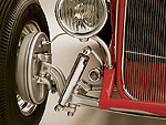 My prototype for that style is a Vermillion Red '27 T, built 55 years ago by Sal Macchia and Lou Banto, Los Angeles Mobilgas Station co-owners. To make the disparate '27/'32 combination fit, the partners sectioned the '32's front and rear crossmembers, and fabricated custom-angle iron-frame sections to replace the original K-member. A shortened, filled, and peaked Deuce grille replaced the T's radiator.
