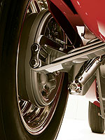 Churning upward of 300 bhp through a contemporary Centerforce clutch and pressure plate would tax a "standard-issue" curved '39 Ford three-speed, so the Big T's tranny is a five-speed Tremec World Class unit from a Ford Mustang, with a 37-percent overdrive in fifth. Mark adapted a GM tailhousing so the Hurst shifter falls in the correct position. The rearend is a Halibrand V-8 quick-change with beefed-up axles. The handsome wheels are polished Budnik's, cast to resemble classic kidney-bean hoops.